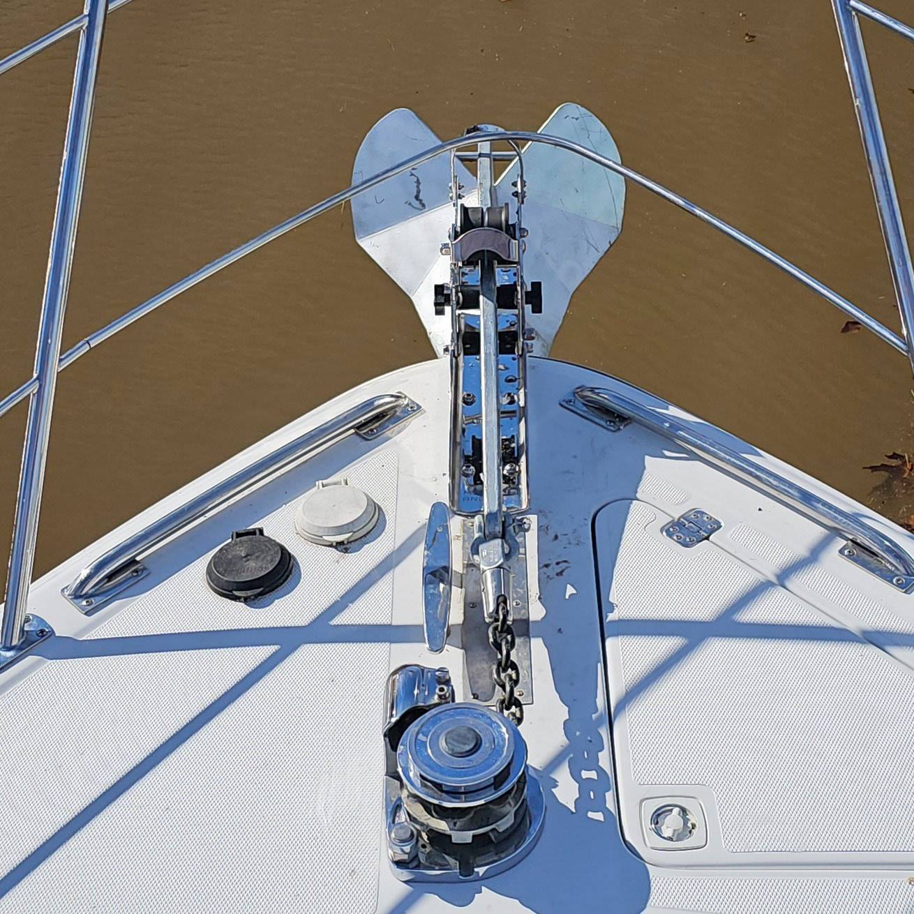 The original bow roller was somewhat small, even for the 35 pound anchor. We replaced the bow roller with the Mantus BR2. A very beefy roller with several safety features that made it too good not to have on the bow of our boat. The only downside has been that the anchor we choose, Lewmar, does not work with the anchor break as the shank is too wide. This is a Lewmar issue and not a Mantus issue, but when we change to a Mantus anchor in the future, this problem will be resolved. The anchor break allows you to secure the anchor by using your foot to depress the break, sliding two stops around the shank and holding it in position until you lift up on the break, freeing the anchor. It also keeps the shank level as you deploy the anchor and away from the bow of the boat, this part works great. In addition to the Bow roller, we also picked up a single line snubber and a dual line mooring ball snubber from Mantus.